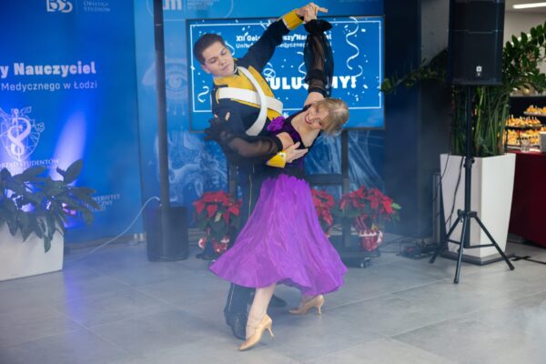 Graduates of the Medical University of Łódź, Ms Ewa Zagalak and Mr Mikołaj Grajewski, who sang the songs Może za jakiś czas (Maybe in a while) and Misty at the beginning of the event. At the end of the Gala, students Natalia Witkowska (4th year of Medicine at the Ministry of National Defence) and Filip Szymański (4th year of Medicine and Dentistry) presented their skills by dancing the English waltz.
