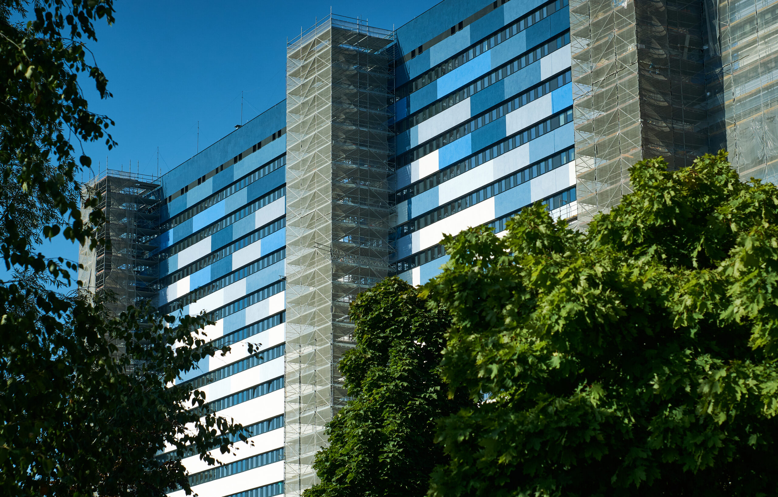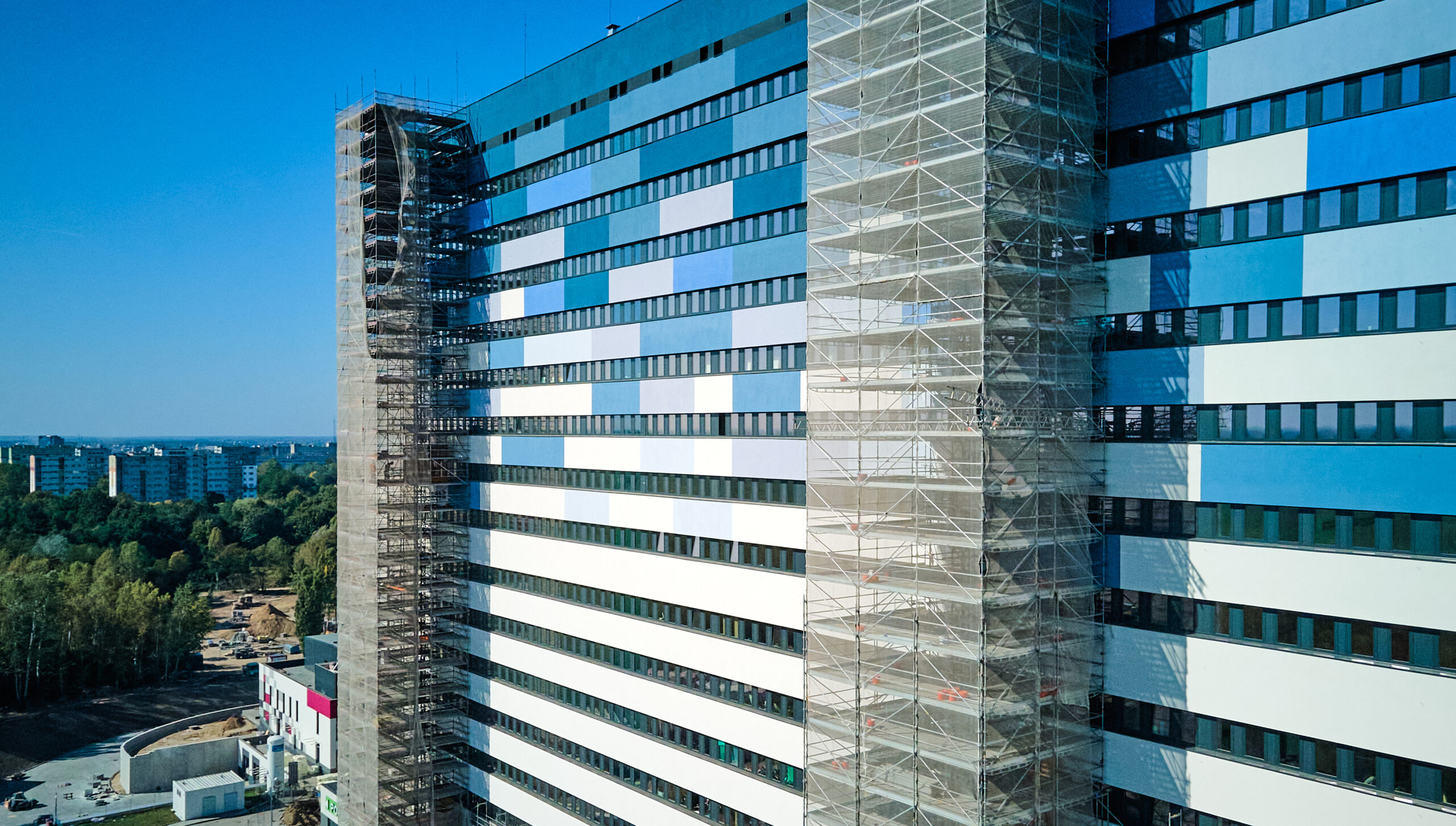 One of the most distinctive buildings in Lodz has changed its appearance: we replaced the turquoise with shades of blue. However, this project was not only about the visual effect, but above all about the insulation of the building and the resulting financial savings. We have already thermally modernized 19 facilities at the university, but this undertaking was the largest in its scale. This project fits perfectly into the currently ongoing second stage of CKD construction i.e. the adaptation of the top floors of the hospital, says the rector, prof. Radzisław Kordek
